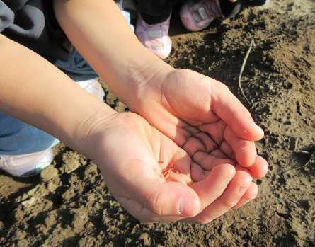 2020.11.18 食育 こんにちは。江南市立布袋北保育園です。 今日は畑に野菜の種を植えに行きました!こどもたちと白菜と大根、にんじんと大根の種を植えました♪ 種が小さくて、「すごい小さいね!」と驚くこどもたち。「早くおおきくな〜れ!」と生長を楽しみにしています♪