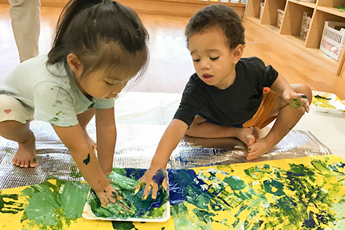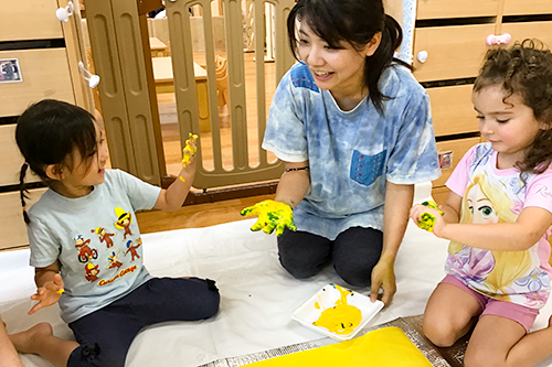 1歳児クラス、2歳児クラス、3歳児クラスとそれぞれで手形アートを楽しみ…