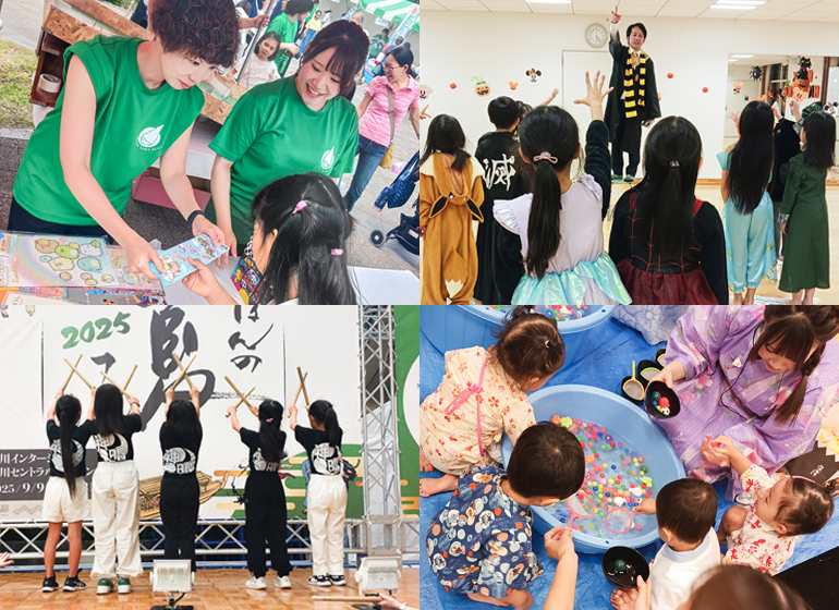 さらに、地域のお祭りにも参加し、太鼓・ダンス・ゲームブースをこどもたちが主体となって企画。パフォーマンスの練習から衣装づくり、ブースの内容まで自分たちで考え、当日は「どうやったら楽しんでもらえるかな?」と考えた工夫がたくさん詰まったブースや、元気いっぱいのステージが大盛り上がり!地域の方から声をかけてもらう姿も見られ、こどもたちにとって大きな達成感と自信につながりました。